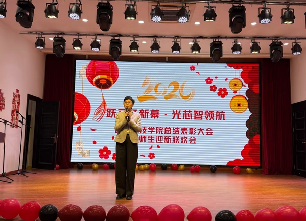 1月16日下午,智能科技学院“跃马开新幕・光芯智领航”总结表彰大会暨师生迎新联欢会在学校工会之家二楼举行。校党委副书记贺莉、顾敏院士、学院领导班子、全体教职员工及部分学生代表齐聚一堂,活动由教师李蔚、博士生呙钰婷主持。
