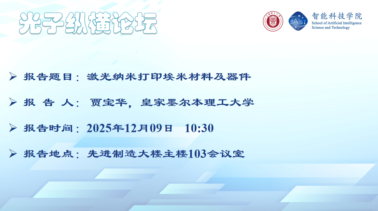 【活动预告】光子纵横论坛—激光纳米打印埃米材料及器件